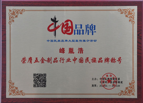 荣获五金制品行业中国民族品牌称号